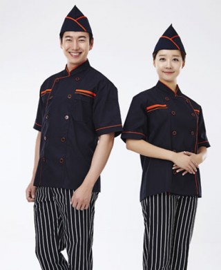 CO-53 주황 띠 진곤색 반팔 조리복 > 조리복
