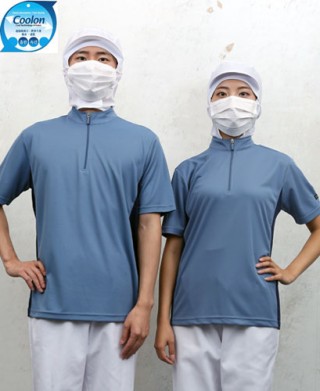 W-164 반팔 블루 지퍼 차이나카라ㅡㅡ(남녀공용 위생티) 빅사이즈있음 > 위 생 복