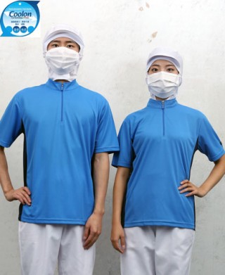W-164 반팔 청색 지퍼 차이나카라ㅡㅡ(남녀공용 위생티)-빅사이즈있음 > 위 생 복
