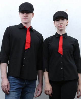 Y-364 NEW 칠부 검정 적넥타이 포인트ㅡㅡ(남여공용 사이즈) > 셔츠/서빙복