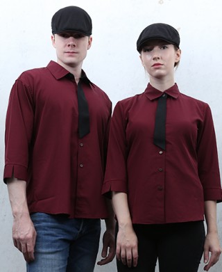 Y-366 NEW 칠부 자주 검넥타이 포인트ㅡㅡ(남여공용사이즈) > 셔츠/서빙복