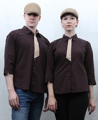 Y-713 NEW 커피 베이지넥타이포인트ㅡㅡ 칠부(남여공용사이즈) > 셔츠/서빙복