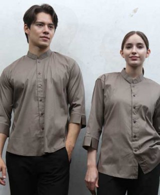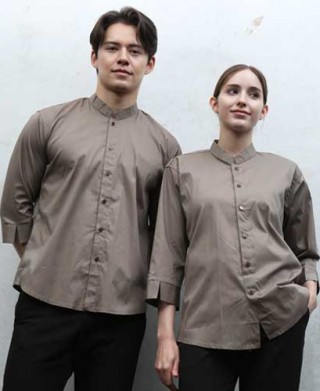 Y-722 NEW 카키 차이나카라 칠부 셔츠-(남녀공용) > 셔츠/서빙복