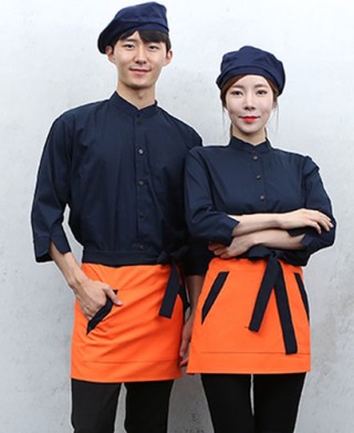 원단C/N스판 면혼방스판으로 질감이 좋고 레스토랑,테이크아웃.커피전문점,휴게소,등 단체복으로 쓰입니다.