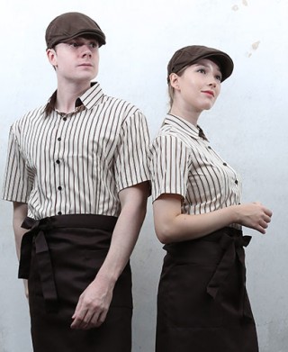 Y-738 반팔 브라운 줄지 셔츠 > 셔츠/서빙복