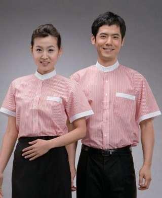Y-80 반팔 적줄지 백색차이나카라 > 셔츠/서빙복