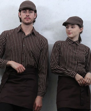 폴리에스테르95% 스판텍스5% 스트라이프원단 으로 어느 매장에서든 잘 어울리게 되었으며 잘 어울리는 모자와 앞치마를 선택하시면 한결 돋보입니다