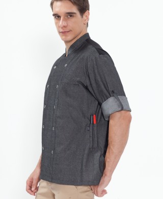 KO-129 회색 데님 이중소매 스넵버튼(27) > 조리복