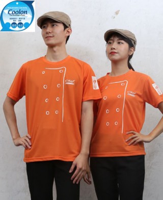 기능성원단사용하여 가볍고 시원하며 일시적으로 또는 티셔츠 입고 조리하시는 분들에게 쿡복처럼 모양을 낸 티셔츠입니다.