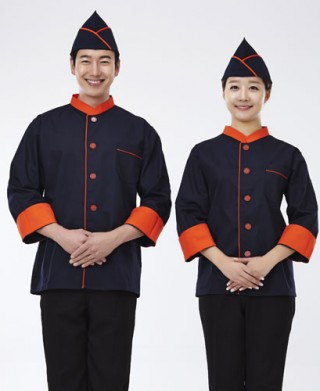 CO-022 주황 배색 곤색 조리복 (칠부,긴팔 겸용) > 조리복