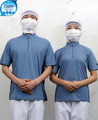 W-164 반팔 블루 지퍼 차이나카라ㅡㅡ(남녀공용 위생티) 빅사이즈있음 > 위 생 복